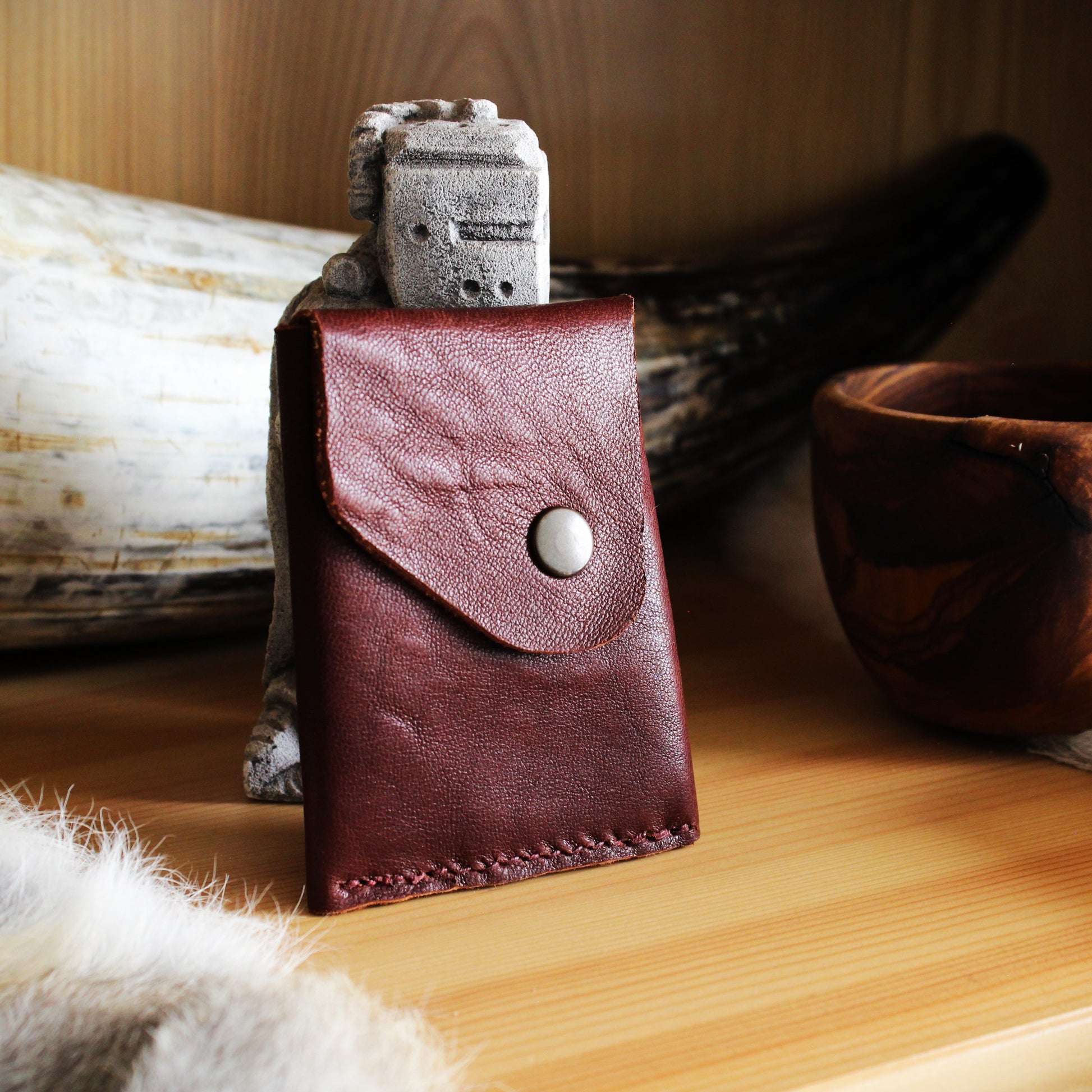 - Cousue à la main avec du fil de lin poissé.